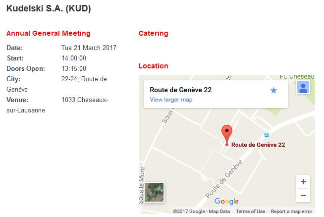And then by clicking on the entry you will see full details of that event, e.g. Kudelski AGM